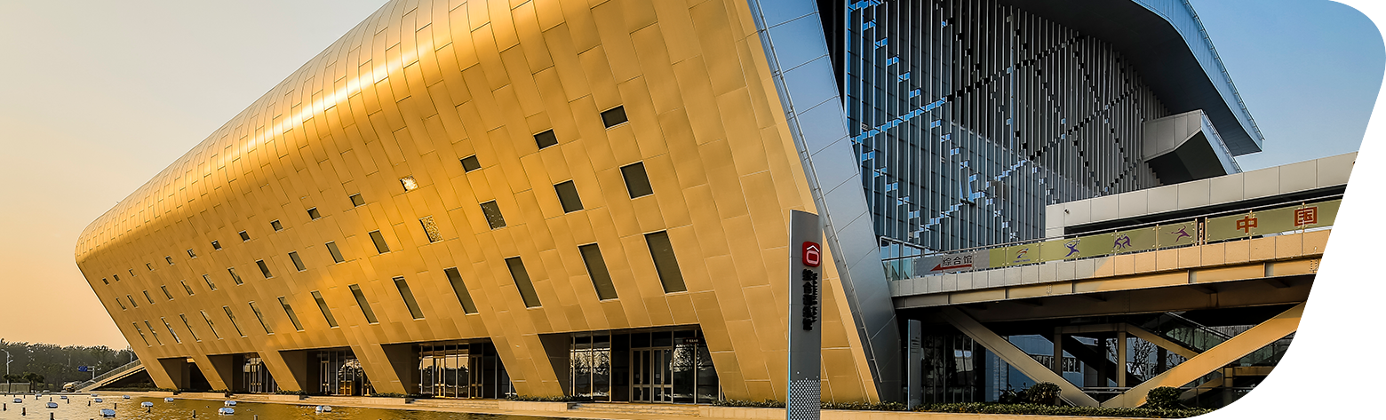 場館以“山水相依、五省通衢”為理念,采取山環(huán)水抱、山水相依的規(guī)劃格局